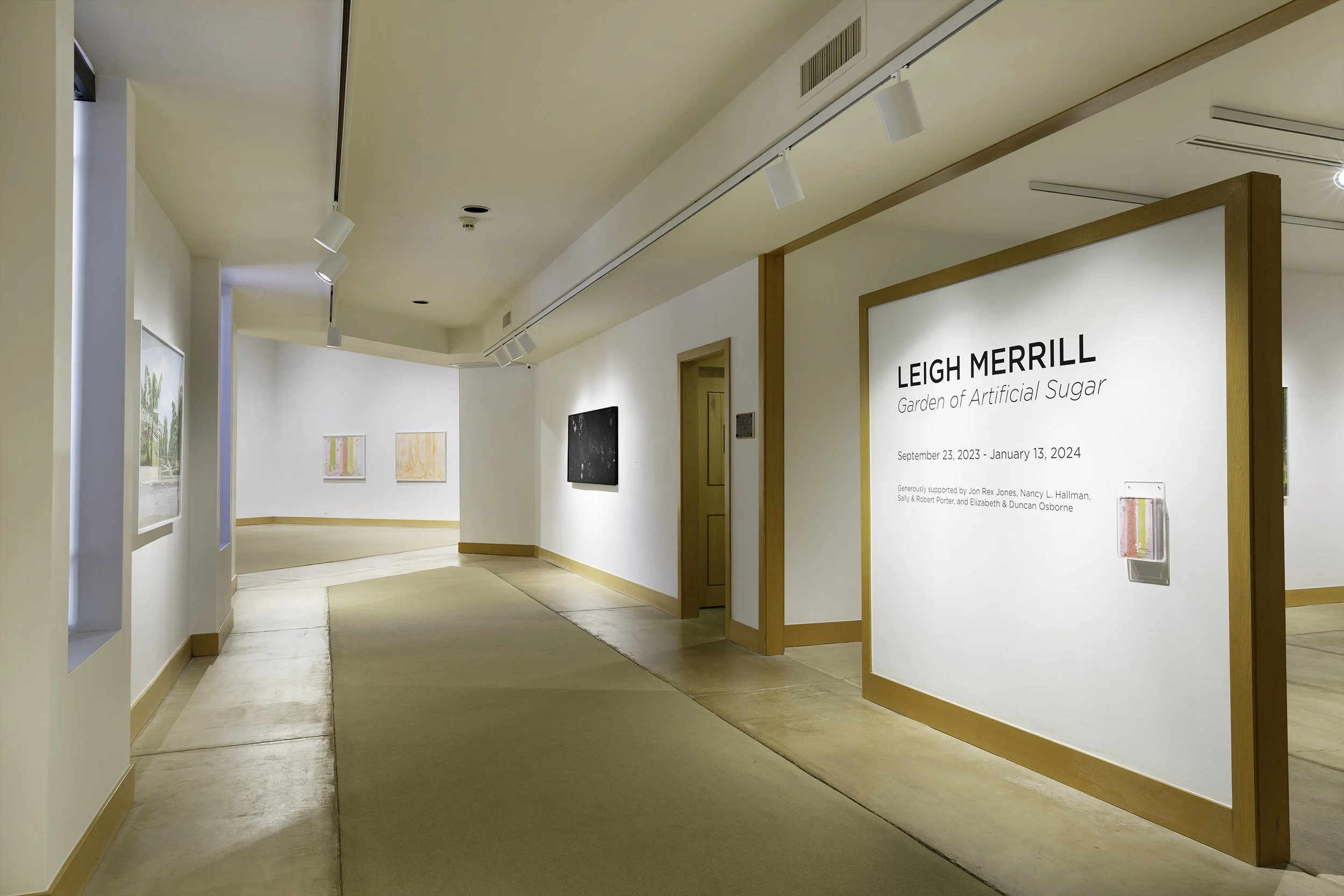 Leigh Merrill's artwork challenges photographic perception and the physical and cultural formation of place. By interrogating the inherent limitations of photographic representation, her work reveals both the desire and simulacrum present around us and within the medium itself. Merrill uses photography and video to observe, making thousands of source photographs and videos on location. Working in her studio, she creates collaged images from this massive database; each work contains up to hundreds of individual sources. These meticulously crafted collages combine disparate elements to create a visual language that pulls more from painting and drawing than traditional photography.