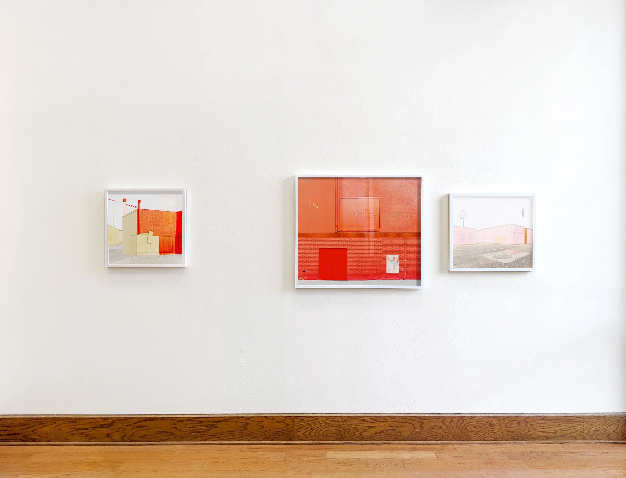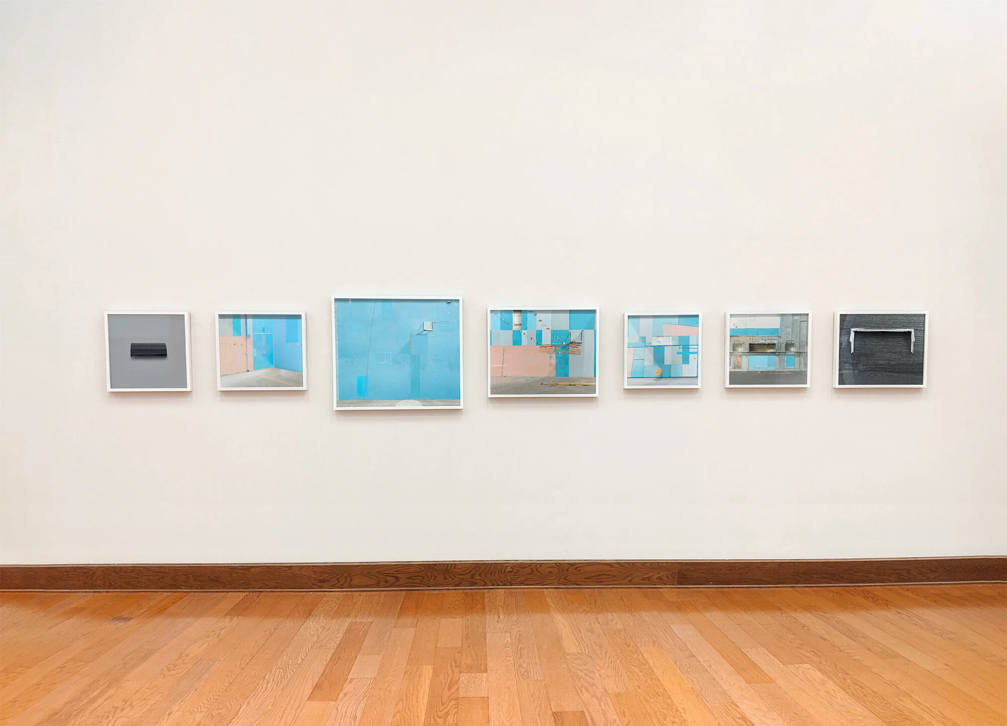 Working primarily with photography, I create digitally collaged photographs works that explore the impact of desire, simulation, and perception on our contemporary landscapes. Through the abstraction and articulation of source photographs, these digital collages become metaphors for movement through place and for the collective residue found in the spaces we inhabit and travel through. Within each digital collage, the constructed locations depict elements abstracted to color fields alongside hyperreal detail. The individual pieces within this project all have similar formal elements and objects; this subtle repetition forms a visual language of a distant, latent architecture washing to the surface.